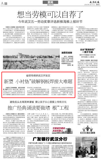 武汉晚报 | 新型“小衬垫”破解钢板焊接大难题